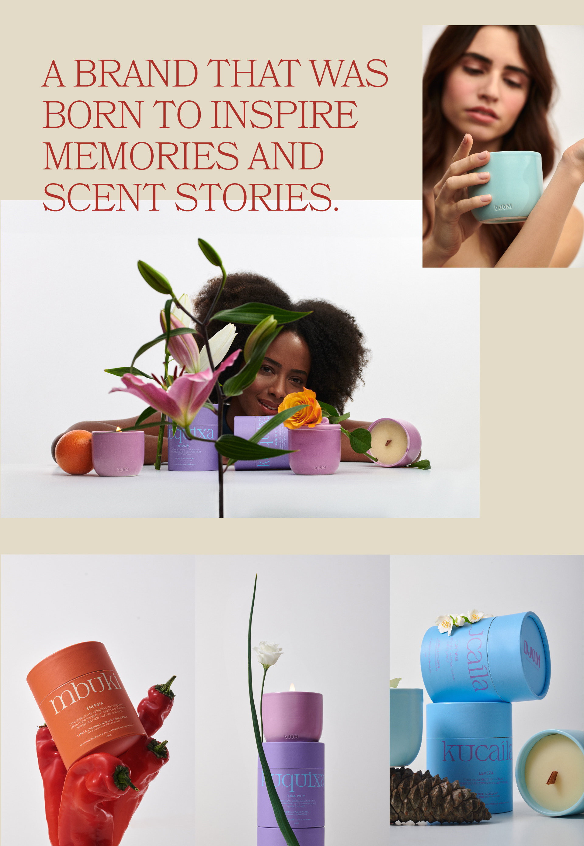 DJOM was conceived with the intention of awakening the senses and making people feel good. We believe that life should be lived with the senses to full bloom, and that is what we seek to offer through our products. Our unique approach involves not only visual aesthetics, but also the exploration of scents and touch that add a special touch to everyday life.